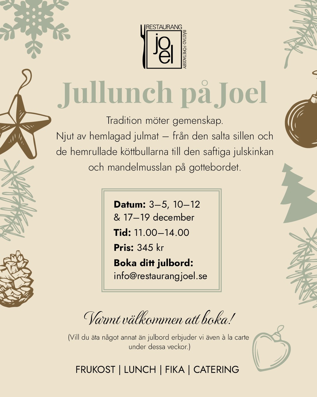Vi förbereder en god och lagom jullunch, fint upplagd och färdig att hämta.